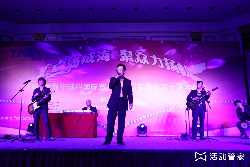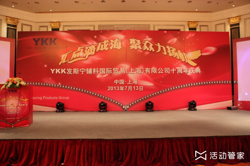 YKK发斯宁辅料国际公司十周年庆典 于2013年7月13日隆重举行,出席人数200人。YKK是世界上最大的拉链品牌,更是LV、香奈儿等奢侈品的必备配件。它一直秉承严谨、认真的态度,善之巡环是他们的企业精神。